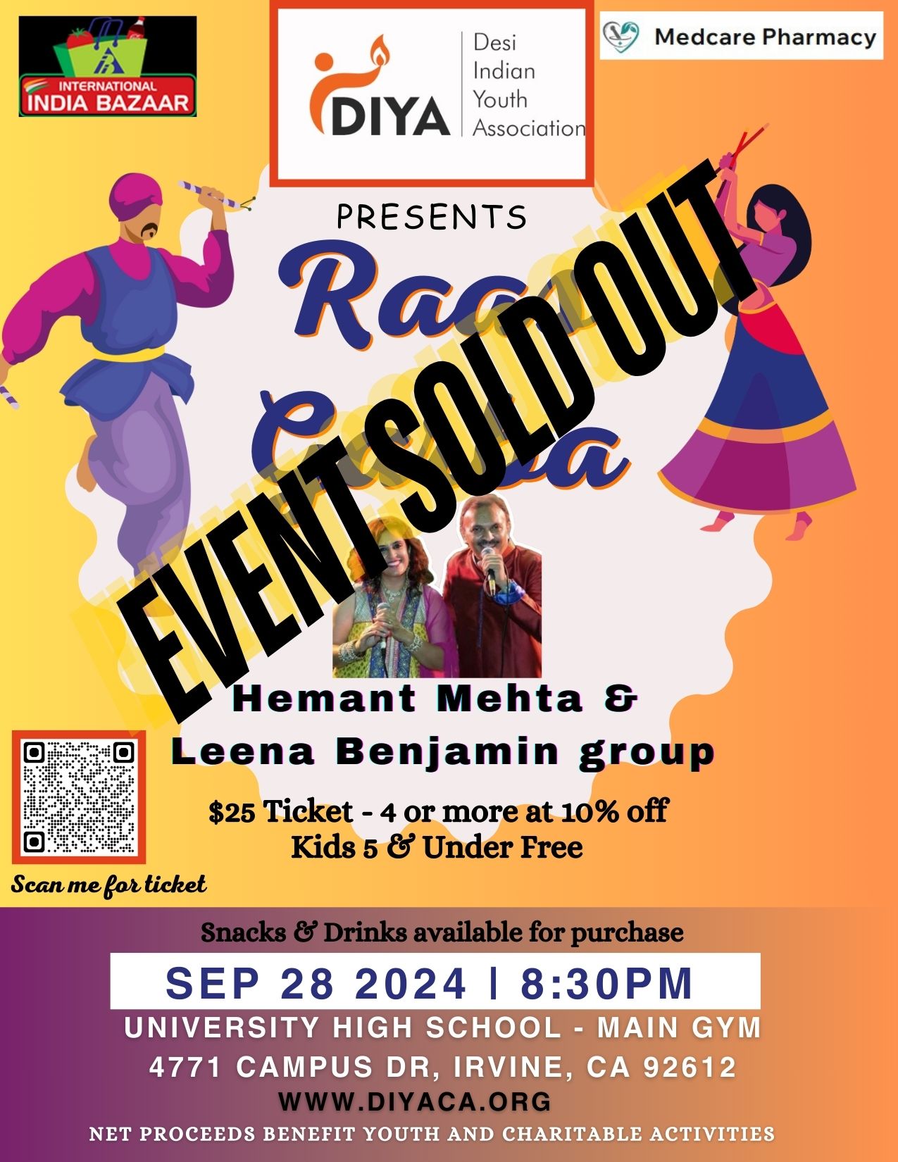 DIYA, a vibrant youth association, is excited to host an electrifying Raas Garba event on September 28th! Join us for an unforgettable evening filled with rhythmic beats, vibrant colors, and the energetic spirit of traditional Indian dance. The night will be brought to life by the renowned singer Hemant Mehta & Leena Benjamin group, who will lead us in dancing to the festive tunes. Whether you’re a seasoned dancer or new to Garba, this event promises joy, community spirit, and endless fun. Don’t miss the chance to dance the night away with DIYA!